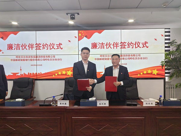 隨后雙方簽署《廉潔伙伴共建協(xié)議》。根據(jù)協(xié)議,雙方深入推進清廉金融文化建設(shè),加強雙方在廉潔領(lǐng)域的合作共建,通過互相承諾、互相監(jiān)督,促進建立廉潔、誠信、共贏的合作關(guān)系,共同助力呼倫貝爾市農(nóng)牧業(yè)的高質(zhì)量發(fā)展。