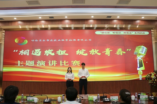 為進(jìn)一步鞏固拓展主題教育成果,深入推進(jìn)“感黨恩、聽(tīng)黨話、跟黨走”群眾教育實(shí)踐活動(dòng),值此公司成立五周年之際,激勵(lì)廣大黨員干部職工在農(nóng)牧業(yè)融資擔(dān)保工作中發(fā)揮先鋒模范作用,5月17日下午,市農(nóng)擔(dān)公司黨委舉辦“相遇農(nóng)擔(dān) 綻放青春”主題演講比賽。本次演講比賽共有10名選手參加,市財(cái)政局相關(guān)科室領(lǐng)導(dǎo)、公司董事?lián)未舜伪荣惖脑u(píng)委,公司全體員工觀摩聆聽(tīng)了本次比賽。