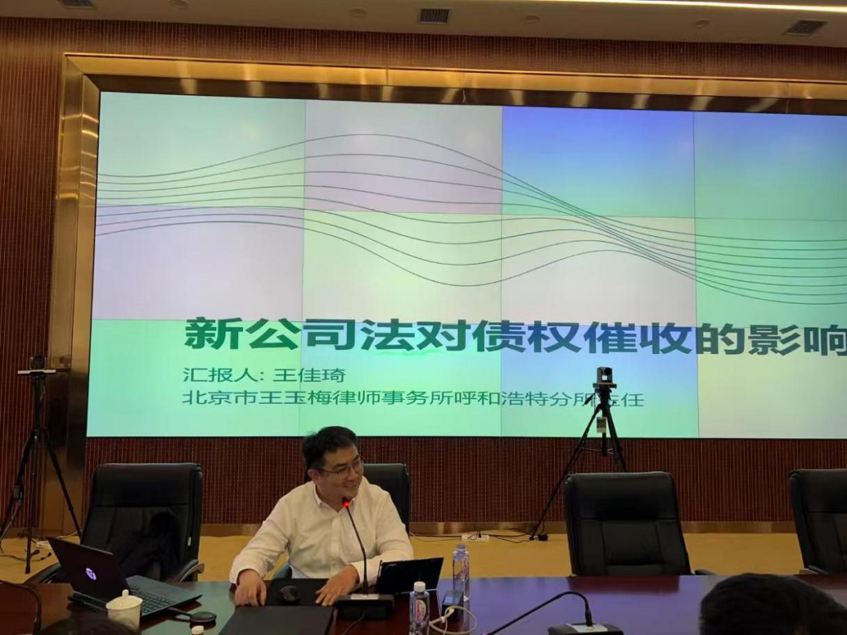 培訓(xùn)期間,北京市王玉梅律師事務(wù)所呼和浩特分所王佳琦主任結(jié)合新修訂的《公司法》在公司治理結(jié)構(gòu)、股東責(zé)任等方面的調(diào)整變化,借鑒其他先進(jìn)地區(qū)金融債務(wù)糾紛典型案例,詳細(xì)介紹了債權(quán)方在面對(duì)不同催收追償狀況下應(yīng)采取利用的司法手段措施,充分合理運(yùn)用最新法律賦予的權(quán)利,從而最大限度維護(hù)公司自身權(quán)益。